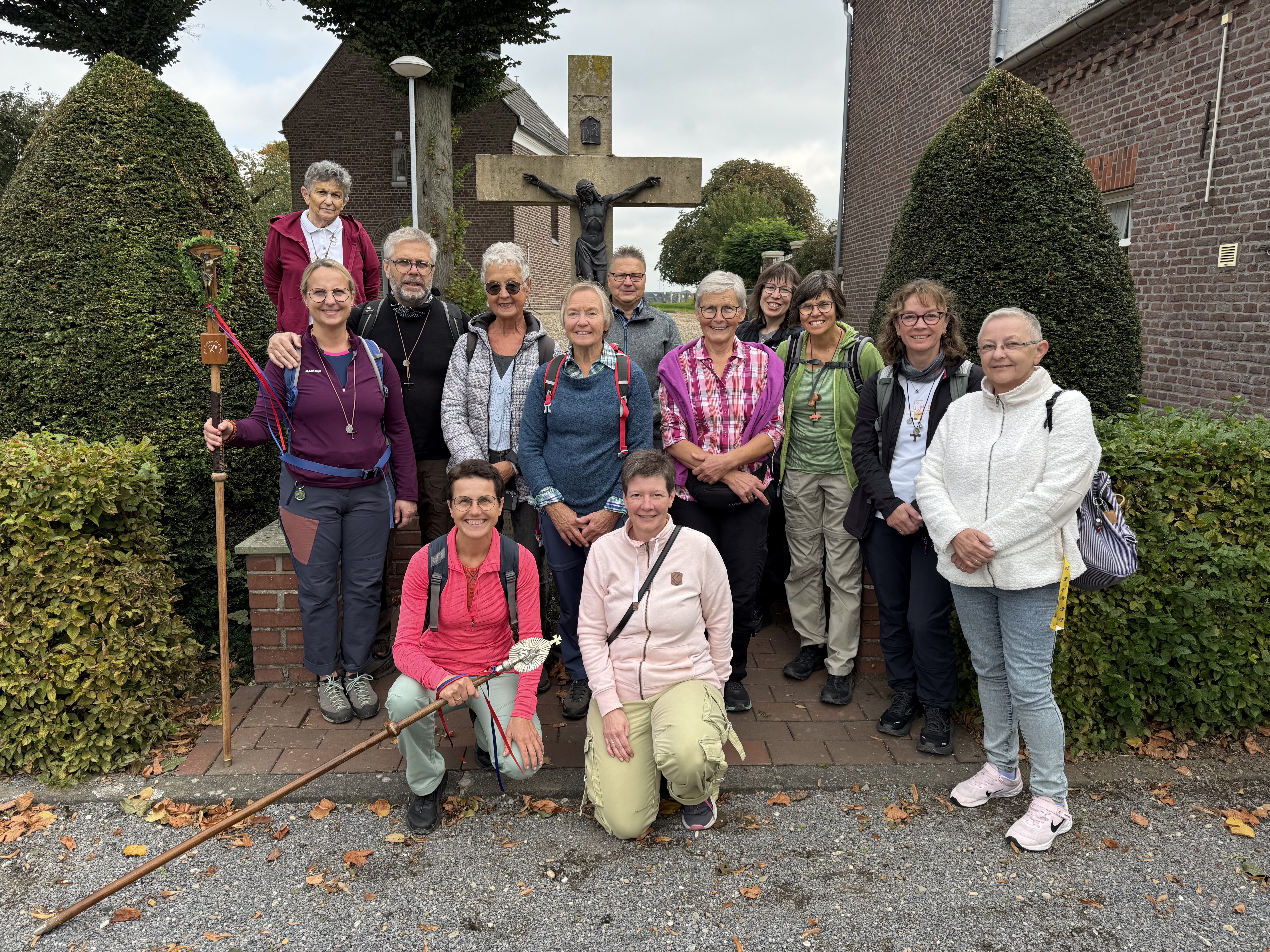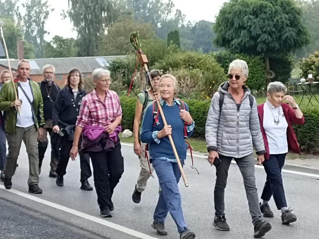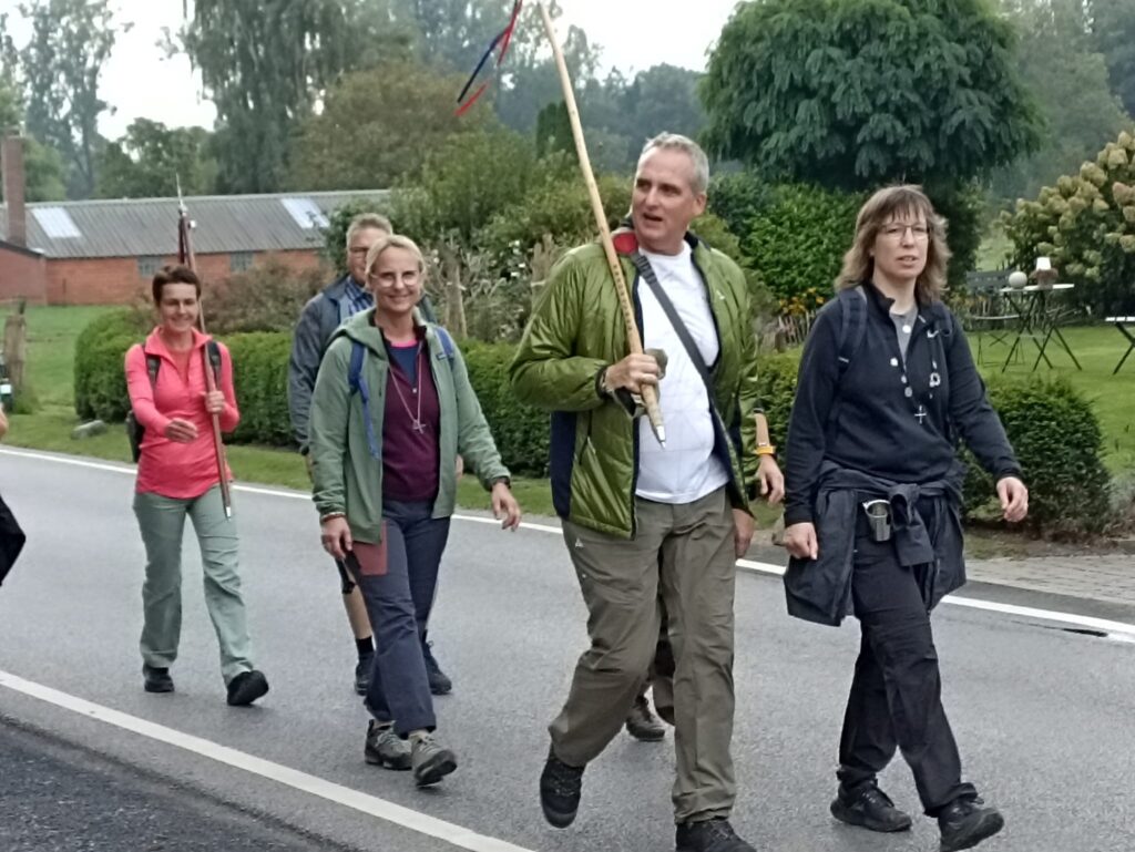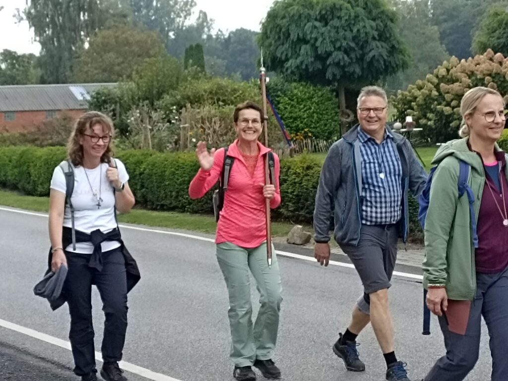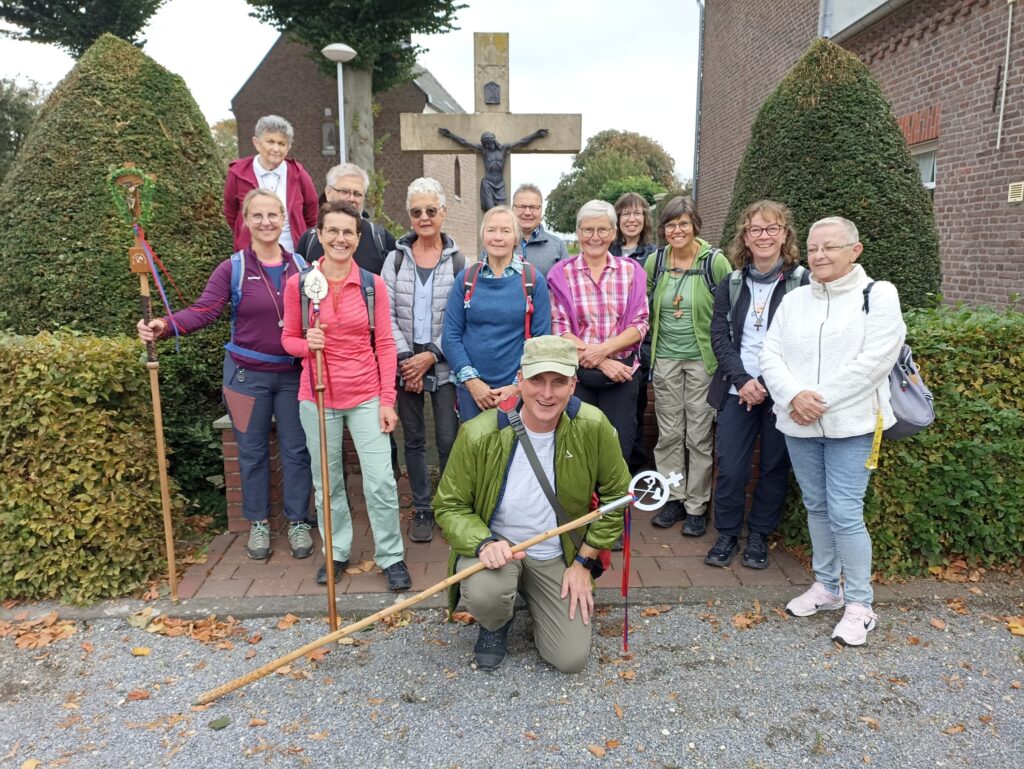 Nach den ersten Kilometern erreichten wir St. Tönis, wo uns die Bäckerei Hoenen mit einem hervorragenden Frühstück versorgte. Vielen Dank an das gesamte Team – wir kommen garantiert wieder! Gestärkt ging es weiter über die Felder bis nach Kempen und weiter zur Antoniuskapelle in Eyll. Dort hatte Wera eine Statio vorbereitet. Gemeinsam mit einem Lied beschlossen wir den Besuch. Zwischendurch sorgte Maria mit ihren Impulsen für wertvolle geistliche Momente.